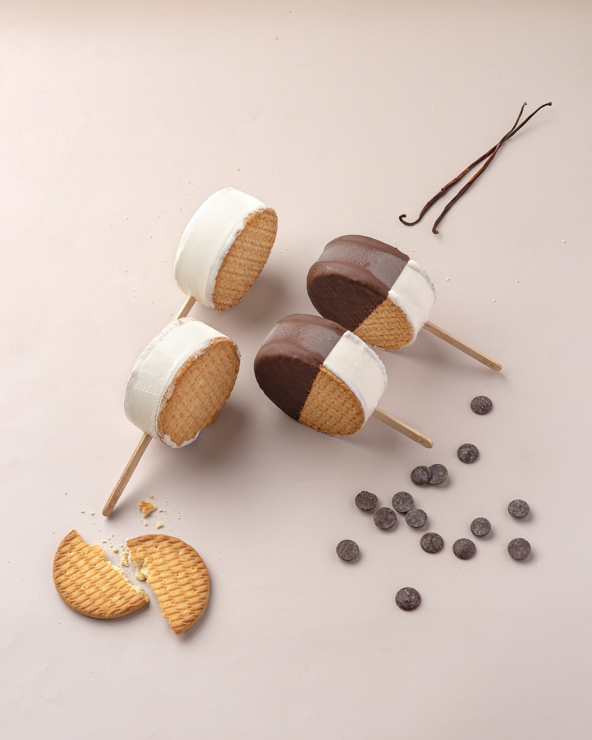 Vanilla gelato surrounded by 2 thin layers of digestive biscuits , true indulgence.