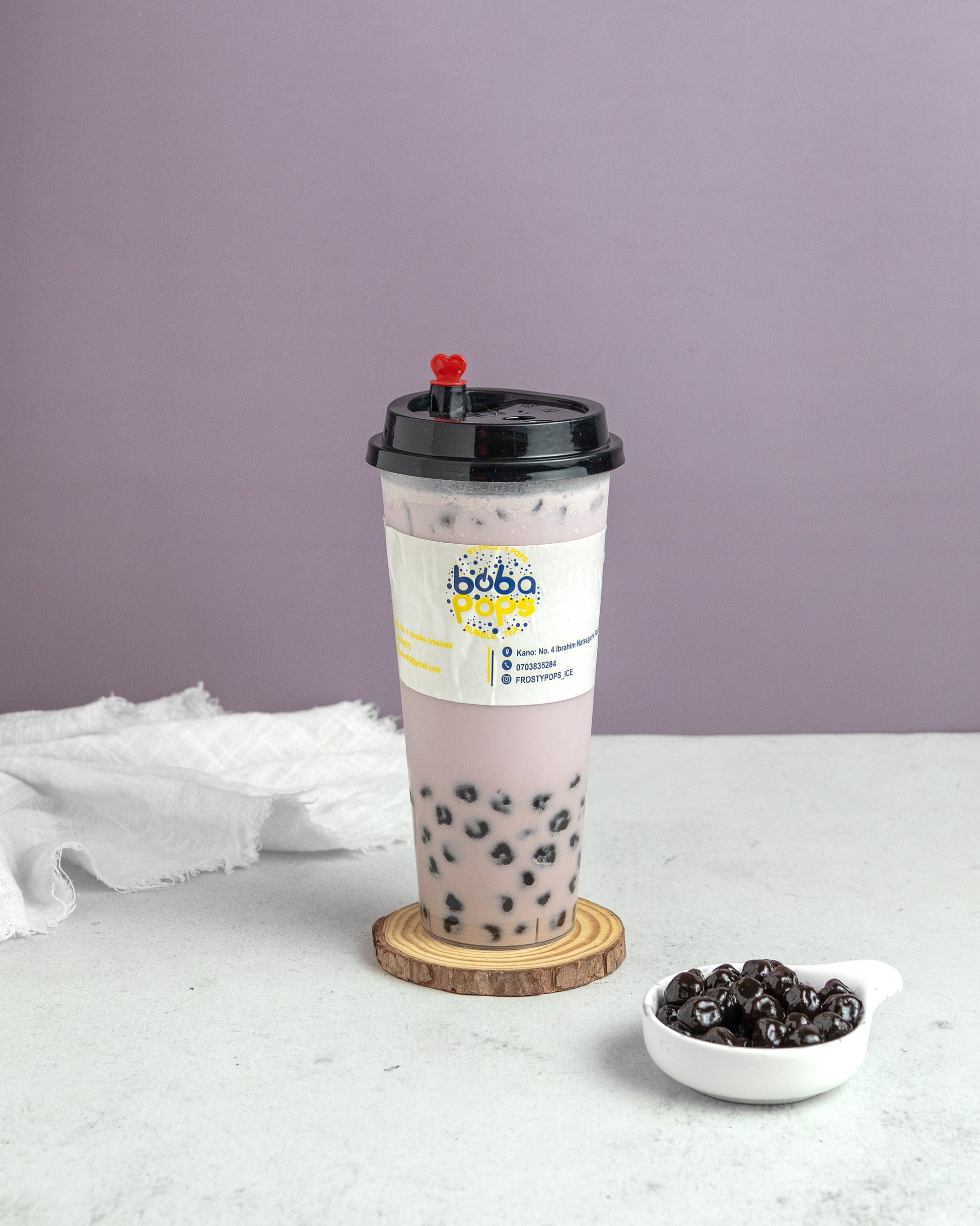 Creamy and smooth milk tea infused with rich taro flavor, gently sweet and velvety with a comforting, indulgent finish.